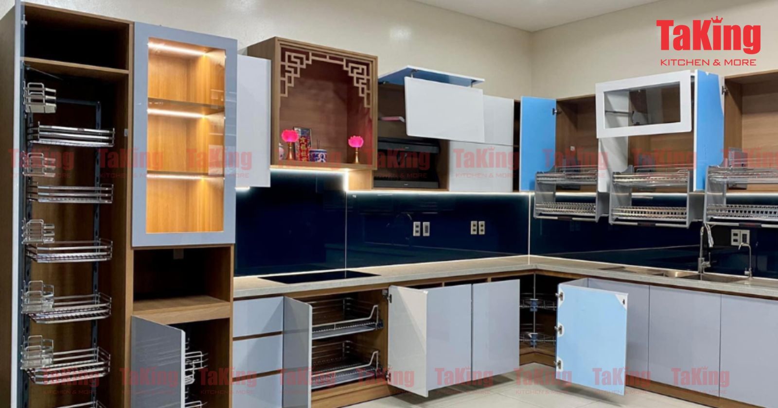 TaKing là thương hiệu Việt Nam nổi bật trong lĩnh vực thiết bị, phụ kiện nhà bếp thông minh được người tiêu dùng đánh giá cao nhờ sự đa dạng, chất lượng và tính ứng dụng cao của sản phẩm. TaKing tập trung vào những sản phẩm như: Kệ bát đĩa nâng hạ, kệ bát đĩa, xoong nồi tủ bếp dưới, kệ gia vị, kệ dao thớt, thùng gạo, thùng rác, tủ khô, mâm xoay góc, máy hút mùi, bếp từ đôi, bếp từ đôi, bếp gas đôi, chậu vòi rửa chén,... TaKing không ngừng đổi mới mẫu mã cũng như chất lượng sản phẩm để đáp ứng nhu cầu sử dụng ngày càng cao của thị trường.